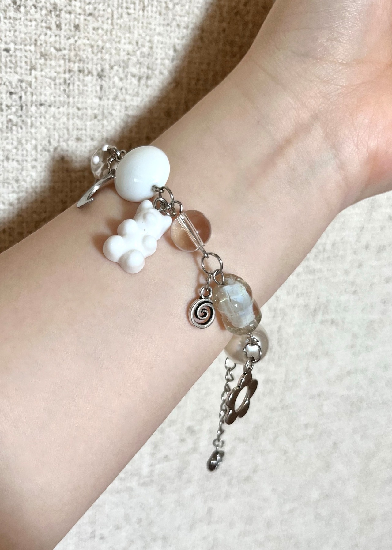 ガラスビーズ シルバーチャーム パールビーズ ホワイト ブレスレット | SPRL